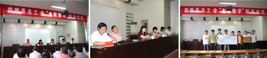 8月27日上午,臨朐縣總工會在縣供電公司會議室召開“臨朐縣總工會金秋助學捐款儀式”。 縣委常委、宣傳部長趙永娟出席儀式,縣總工會黨組書記、工會主席尹秀榮主持,我公司工會主席、副總經理王學軍和由我公司受助的部分學生代表參加了捐款儀式。