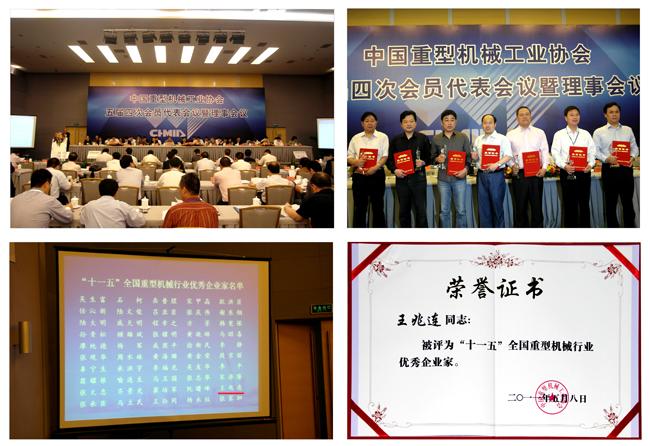 2011年5月8日~9日,中國重型機械工業協會五屆四次會員代表會議暨理事會議在北京鐵道大廈召開。表彰“十一五”期間為我國重型機械行業發展和科技進步做出突出貢獻的企業家是會議的主要內容之一。中國第一重型機械集團公司總經理吳生富和我公司董事長兼總經理王兆連等50名同志被評為“十一五”全國重型機械行業優秀企業家并受到大會表彰。