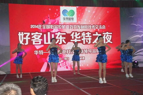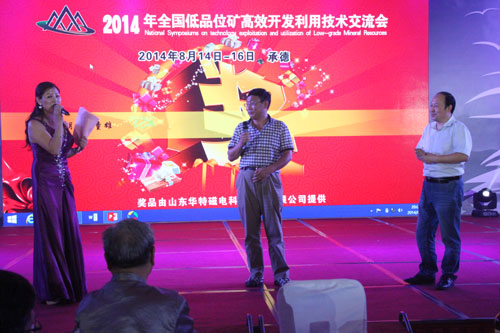 8月14日至17日,2014年全國低品位礦高效開發(fā)利用技術(shù)交流會在承德市嘉和大酒店隆重舉行。會上,我公司展出了提精降渣磁選機、懸浮式磁選機、電磁淘洗精選機等新產(chǎn)品。我公司作為會議鉆石級贊助商還于15日晚舉行了“華特之夜”答謝宴會,宴會還穿插了精彩的文藝節(jié)目和抽獎活動,氣氛活躍。會上,公司與許多客戶進行了交流洽談,收到了預期的效果。