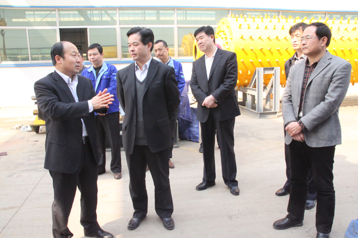 顧建華書記首先來到新工業園區,實地察看了施工現場,詢問了工作進展。隨后,深入到生產第一線,對公司創新產品進行了觀摩,并對新產品的創新點、技術優勢、市場前景等進行了解。王兆連總裁向顧書記等領導介紹了有關創新產品的性能特點和經濟下行條件下的技術優勢和能夠產生的社會效益。顧書記等領導先后對公司新開發的提精降渣磁選機、棒磨機、球磨機生產線等進行了深入了解和調研。