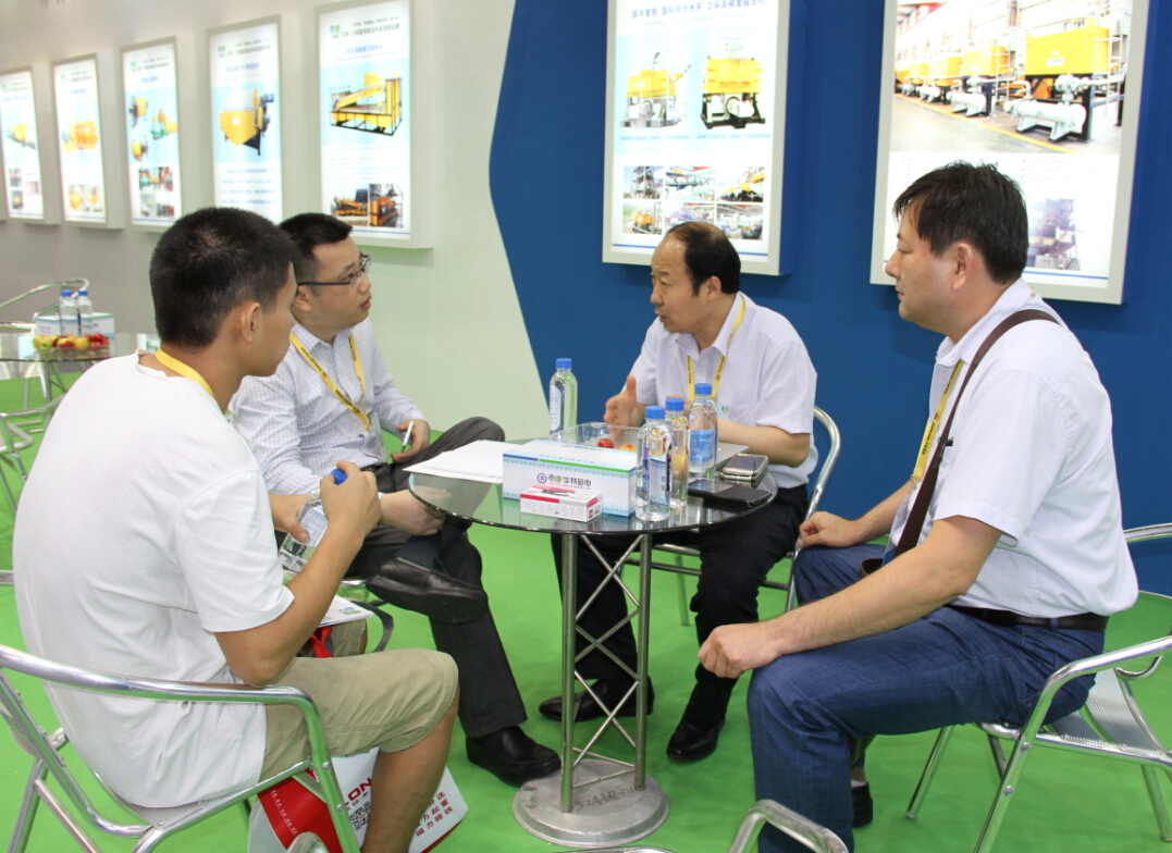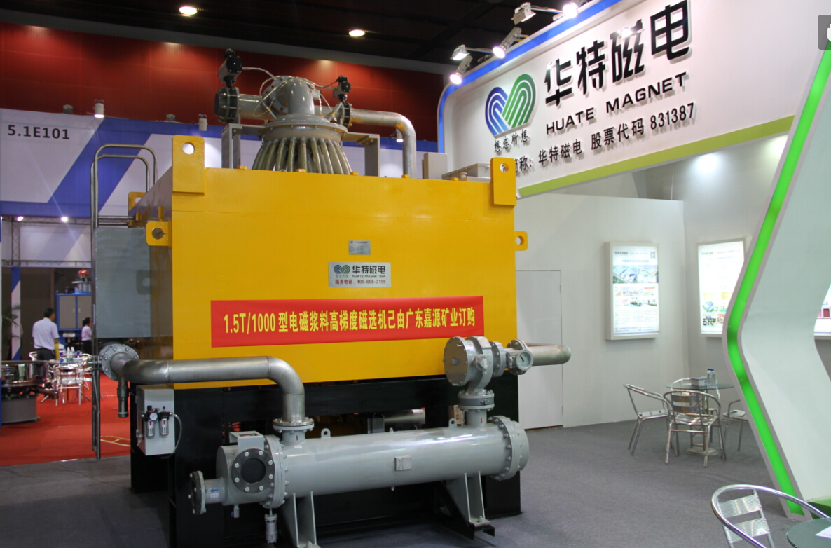 為參加本次展會,我公司精心準備了5.5T/300型低溫超導磁選機和1.5T/1000型電磁漿料磁選機兩臺工業用磁選機,不遠千里,歷時兩天從濰坊運至廣州展會現場,成為本次展會上磁選除鐵裝備的最大亮點。