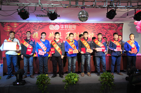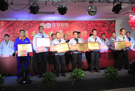 由公司董事長兼總裁王兆連作了《攜手共進 再創(chuàng)輝煌》工作報告,對2016年度工作進行了全面總結(jié)。2016年華特磁電公司更加發(fā)揚敢為人先的精神,優(yōu)化內(nèi)部管理能力,規(guī)劃創(chuàng)新發(fā)展戰(zhàn)略,公司上下一心,迎難而上,激流勇進,保持了良好的發(fā)展勢頭,在技術(shù)研發(fā)、生產(chǎn)制造、市場開拓方面有突破性進展。在過去的一年里,涌現(xiàn)出很多優(yōu)秀團隊和先進個人,他們秉持著對個人品格的堅守和對業(yè)務(wù)能力的追求,勤奮努力,力爭上游,是華特蓬勃向上的模范代表。提出了2017年的發(fā)展思路和工作計劃,明確了2017年的奮斗目標,令人鼓舞,振奮人心。
