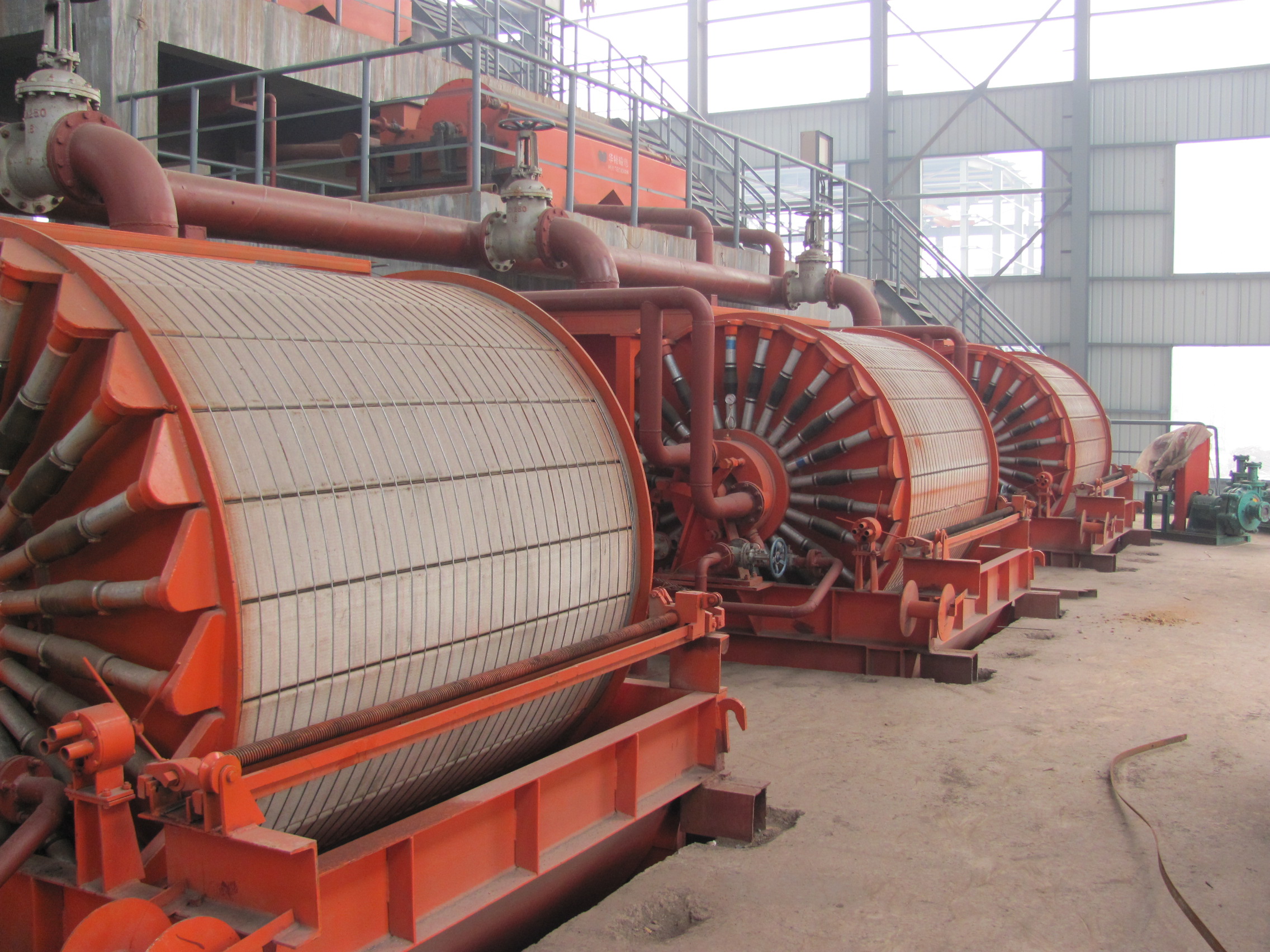 ◆本機依靠圓筒內部磁系作用形成濾餅,磁性物料在磁力和顆粒本身重力作用下呈磁簇狀吸附在濾布上,吸附速度快,效率高。